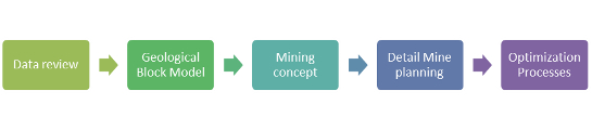 The 3-D block model is the basis of all further planning processes. The mine planning itself starts with the gathering of all available and relevant parameters, such as the clients planned annual production or the required slopes. In the context of the mine planning the next step is the development of the "final pit", which is the basis for a rough planning of the mining process and the required dumps. This first step of planning also includes a preliminary planning of transport routes. This povides a dependable basis for several different planning scenarios, which will be modelled in the further course of the project. Also theme maps can be created for every sector individually.