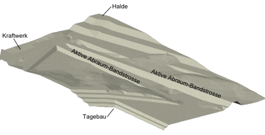 Die anschließende bergbautechnische Planung, die von FUMINCO durchgeführt wurde, begann mit dem Aufschluss eines separaten Tagebaus auf dem Gebiet der zukünftigen Abraumhalde. Nachdem in diesem Bereich die Lagerstätte ausgekohlt war, begann die Planung der Abraumhalde. FUMINCO übernahm die gesamte Planung der Halde mit zwei Absetzer-Gurtband-Systemen. Diese zwei Fördersysteme wurden anschließend von uns auch in die Tagebauplanung unseres Kunden integriert. Hierfür und für die Implementierung eines Kohle-Gurtband-Systems in den Tagebau mussten die Planungsstände unseres Kunden angepasst werden. Des Weiteren planten wir in enger Zusammenarbeit mit dem Kunden die Infrastruktur für die Wasserversorgung und Wasserentsorgung (Gräben, Rohrleitungen und Pumpen) sowie für den Verkehr (Wegebau). Die Erstellung eines Rekultivierungsplanes für das "FINAL LAYOUT YEAR 2038" beendete unsere Planungsarbeiten. Er weist landwirtschaftlich und forstwirtschaftlich nutzbare Flächen sowie Überflutungsbereichen innerhalb des Tagebaus und Einrichtungen der Wasserhaltung auf den Halden aus.